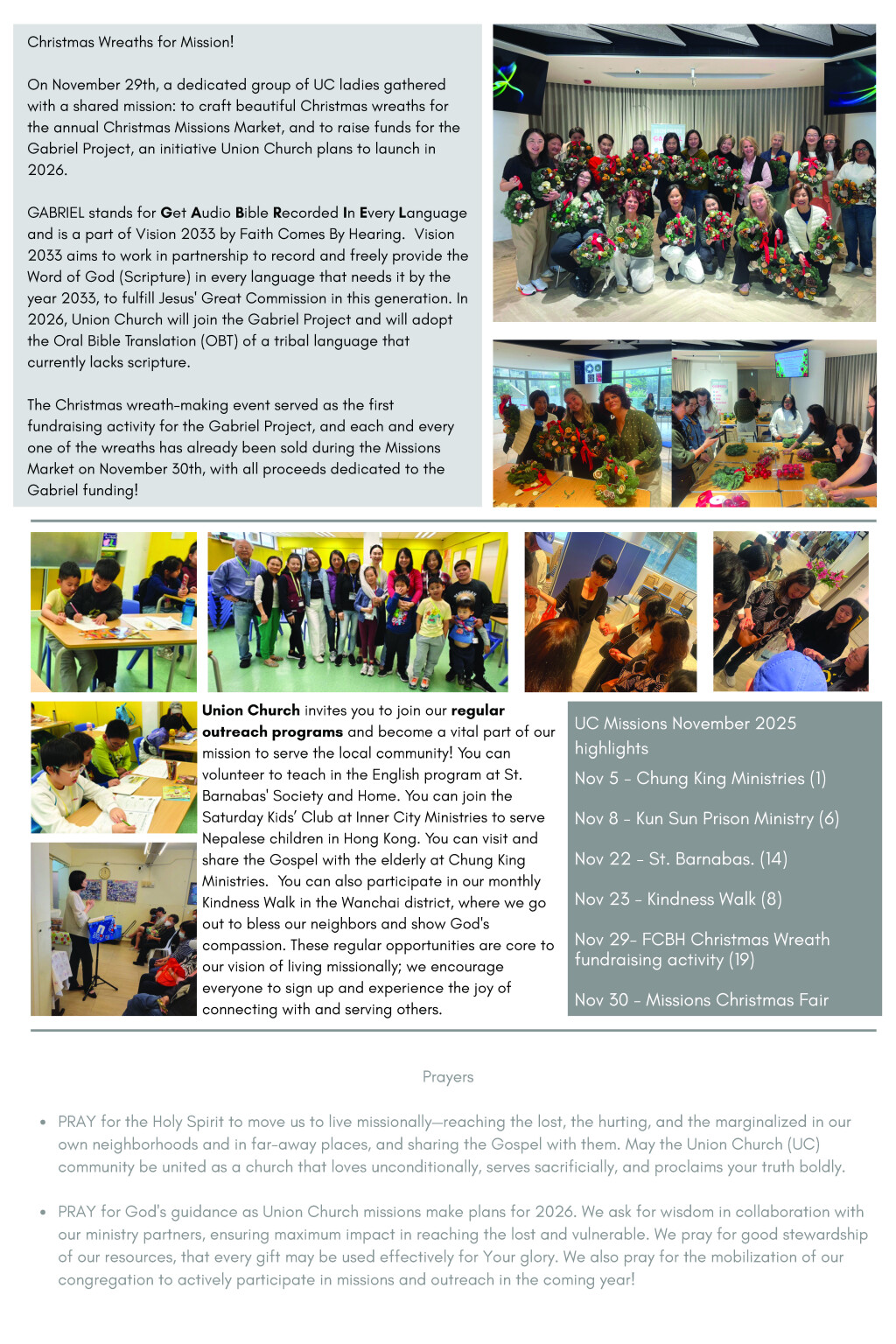 Union Church Missions Newsletter November 2025