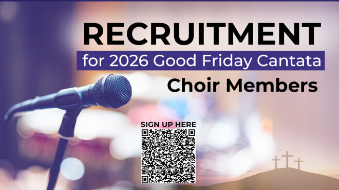 Thank you for your interest in singing for the 2026 Good Friday Cantata Choir Members. Recruitment is open from 23 November, 2025 (Sunday) to 14 December (Sunday) by...